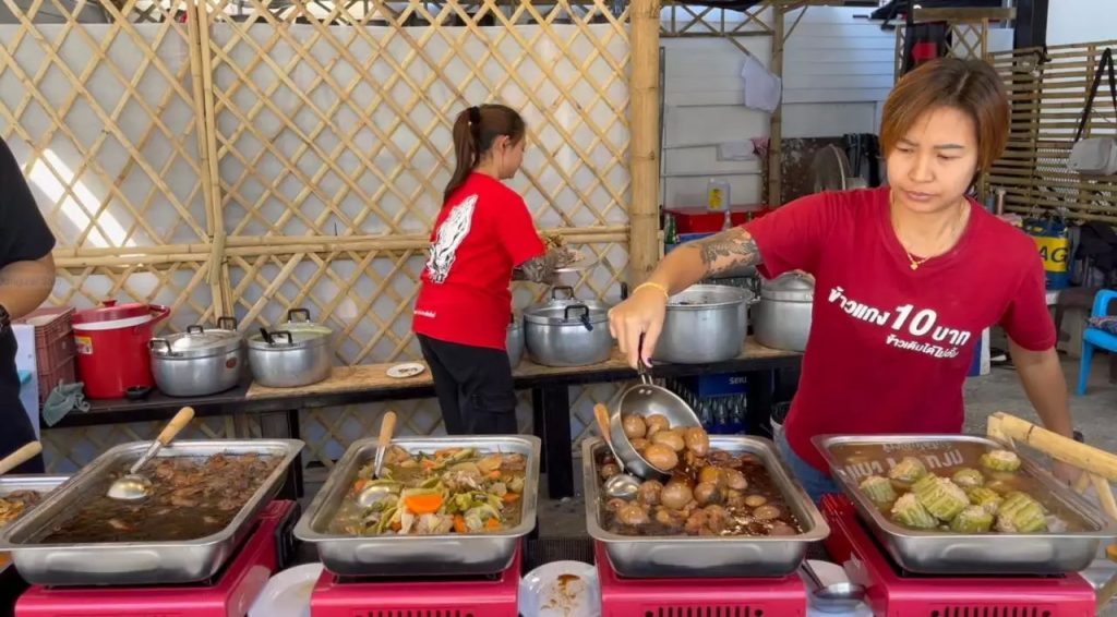 ร้านนี้มีชื่อว่า “ข้าวแกง 10 บาทเชียงใหม่” เปิดบนถนนจ่าบ้าน ต.พระสิงห์ อ.เมืองเชียงใหม่ ขายกับข้าวถ้วยละ 10 บาท ส่วนข้าวขายจานละ 10 บาท เติมได้ไม่อั้น แถมยังมีน้ำพริกกระปิพร้อมผักสดให้ตักได้ฟรีตลอดทั้งวัน โดยเฉพาะช่วงเที่ยง และเย็น มีลูกค้าแวะเวียนมาสั่งอาหารรับประทานกันไม่ขาดสาย