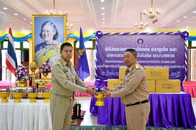 ในการนี้จังหวัดชลบุรี พร้อมด้วยกองทัพเรือ และสมาคมการประมงแสมสาร สมาคมประมงชลบุรี กลุ่มเกษตรกรประมงตำบลบางเสร่ สมาคมประมงพื้นบ้านจังหวัดชลบุรี กลุ่มวิสาหกิจชุมชนเรือท่องเที่ยวและกีฬาบางเสร่ และผู้มีจิตศรัทธาร่วมบริจาคสิ่งของที่มีสารไอโอดีน ได้แก่ ปลากะตักแห้ง 510 กิโลกรัม ปลาทูเค็ม 1,305 กิโลกรัม ปลากระป้อง 500 กระป้อง น้ำปลา 500 ขวด จึงได้กำหนดจัดพิธีส่งมอบให้กับผู้แทนกองทัพเรือ เพื่อเดินทางไปส่งมอบยังสำนักงานโครงการส่วนพระองค์สมเด็จพระกนิษฐาธิราชเจ้า กรมสมเด็จพระเทพรัตนราชสุดาฯ สยามบรมราชกุมารีโดยเสด็จพระราชกุศลโครงการตามพระราชดำริต่อต้านโรคขาดสารไอโอดีน ขึ้น