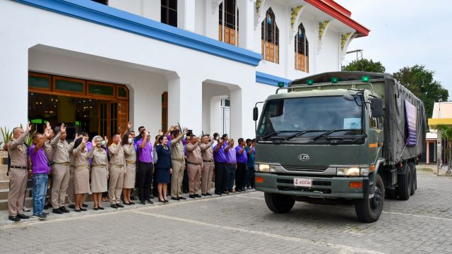 จังหวัดชลบุรีส่งมอบปลากะตักแห้ง อาหารทะเล ร่วมโครงการส่วนพระองค์ กรมสมเด็จพระเทพฯ ต่อต้านโรคขาดสารไอโอดีน ณ วัดช่องแสมสาร ตำบลแสมสาร อำเภอสัตหีบ
