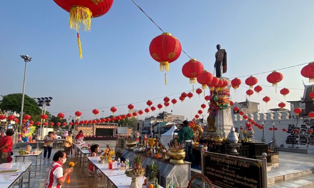 นครราชสีมา –บรรยากาศตรุษจีนโคราช ชาวไทยเชื้อสายจีน แห่กราบไหว้ขอพรย่าโม และศาลหลักเมือง สิ่งศักดิ์สิทธิ์คู่บ้านคู่เมืองกันคึกคักเชื่อจะช่วยหนุนดงชีวิตให้ราบรื่น ไร้อุปสรรค