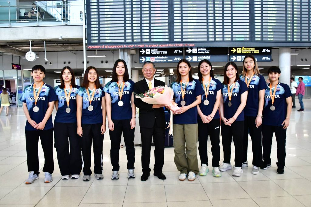 ล่าสุดเมื่อช่วงบ่ายของวันจันทร์ที่ 18 ก.พ.67 ที่ผ่านมา ทัพนักแบดมินตันหญิงไทย พร้อมคณะและผู้ฝึกสอนได้เดินทางกลับมาถึงประเทศไทยแล้ว ที่ท่าอากาศยานสุวรรณภูมิ ด้วยสายการบินไทย เที่ยวบิน TG 416 ในเวลา 14.10 น. โดยมีพลอากาศเอก มณฑล สัชฌุกร อุปนายกสมาคมกีฬาแบดมินตันแห่งประเทศไทย ได้เดินทางไปต้อนรับนักกีฬาถึงสนามบิน