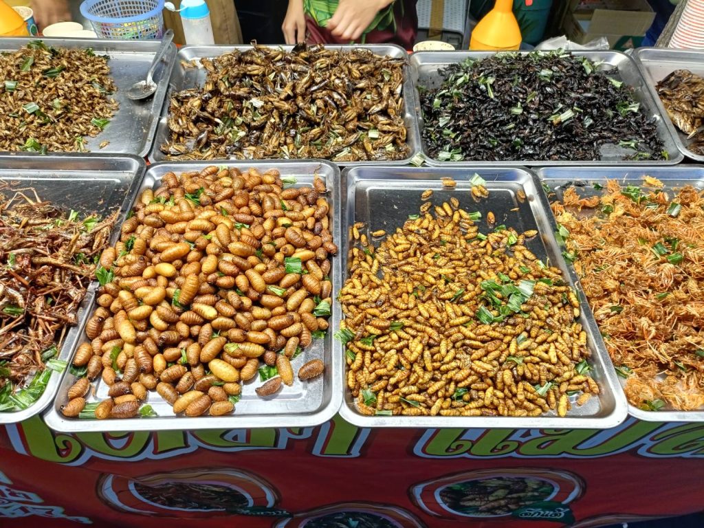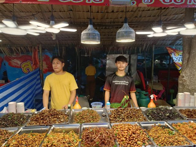 ปัจจุบันมีทั้งแมลงที่นำมาส่งขายจากเมืองไทยและแมลงนำเข้ามาจากประเทศเพื่อนบ้าน ตั๊กแตน บางส่วนส่งมาจากประเทศกัมพูชา, จักจั่น มาจากพม่า, รถด่วน และแมลงบางประเภทมาจากเมืองไทยและจีน ซึ่งทางร้านมีทั้งนำแมลงส่งขายด้วย และทอดขายตามหน้าร้าน ซึ่งอยู่แถวสะพานควาย