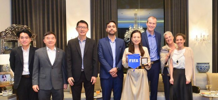 “มาดามแป้ง” นวลพรรณ ล่ำซำ นายกสมาคมกีฬาฟุตบอลแห่งประเทศไทยฯ พร้อมสภากรรมการ ประกอบไปด้วย คุณเลิศศักดิ์ พัฒนชัยกุล, ม.ล.กิติบดี ประวิตร และ คุณ พาทิศ ศุภะพงษ์ เลขาธิการสมาคมฯ ให้การต้อนรับ ตัวแทนคณะทำงานจากฟีฟ่า ประกอบไปด้วย แฟรงค์ เด เรเดลิจเฮด หัวหน้าฝ่ายกิจกรรมฟีฟ่า และ จัดงาน ฟีฟ่า ครองเกส พร้อมด้วย วาเลนตินา คัลโว, อันโตเนตต้า ซานตากาต้า และ การันต์ มีร์ชานดานี เจ้าหน้าที่ฝ่ายกิจกรรม ที่เดินทางมาประเทศไทย เพื่อตรวจความพร้อม และ ดูสถานที่จัดงาน