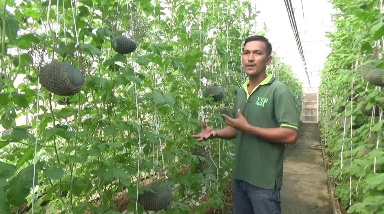 สมาร์ทฟาร์มเมอร์สตูล ปลูกแตงโมนอนเปลในโรงเรือนได้มาตรฐาน GAP โดยศึกษาการปลูกจากยูทูบแล้วได้ผลเกินคาด ตอนนี้มียอดจองราว 200 ลูก คาด ต้นเดือน เม.ย. 67 จะเก็บได้ แตงโมแต่ละลูกหนัก 3-4 กก.ขาย กก.ละ 50 บาท รวมแล้วก็ได้เงินหลักแสนต่อรอบ