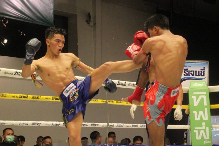 คู่ที่ 1. น็อคยก 2 เป็ก ปตท ทองทวี (แดง) เป็นมวยซ้ายเดินเข้าหาเตะซัายนำเกมส์การชกจบลงเร็วเกินคาดเมื่อ ฉลามเงิน สิงห์มาวิน (น้ำเงิน) เตะซ้ายวืดโดน เป็ก ทิ่มด้วยหมัดซ้ายเต็มปลายคางหลับกลางอากาศพ่ายทีเคโอในยกที่ 2