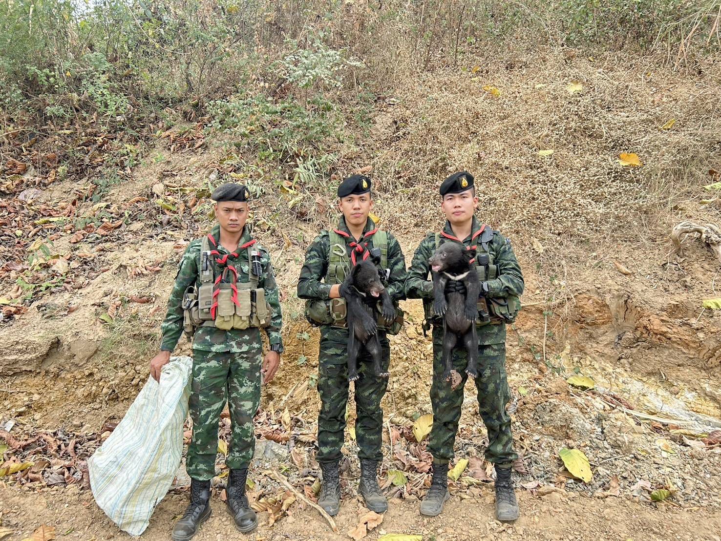 แม่สอด- ทหาร ฉก.ราชมนู ลาดตระเวณชายแดน ตรวจยึด หมีควาย สัตว์ป่าคุ้มครอง (Ursus thibetabus) จำนวน 2 ตัวเตรียมส่งออกนอกประเทศ