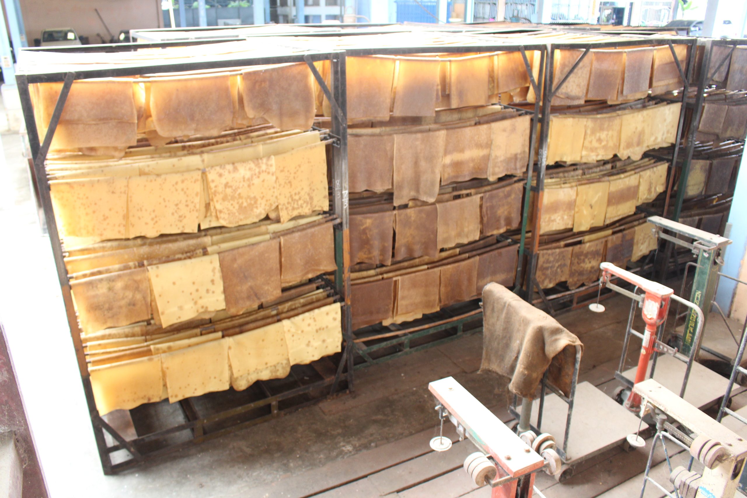 อีกประเด็นก็คือเจ้าของสวนยางพาราแปลงใหญ่ส่วนมากจะได้น้ำยางพารามา 10 กว่าแกลลอนน้ำหนัก กว่า 100 กก.หากทำยางแผ่นเล็ก 1 กก.ทำให้เสียเวลาและไม่คุ้มในการขนส่งในวันหนึ่งก็ทำไม่เสร็จหากทำยางพาราเป็นแผ่น เกษตรกรจึงได้ประยุกต์โดยทำให้น้ำยางใน 1 แกลลอนจะทำยางพาราได้ 1 – 2 แผ่นเท่านั้นแต่ยาง 1 แผ่นมีน้ำหนักอยู่ 7 – 8 กก.ต่อแผ่น ซึ่งในวันนี้ยังมีทำกันอยู่ แต่มีน้อยแล้ว หลังจากมีถนนหนทางที่ทาง อบต.แต่ละพื้นที่พัฒนาขึ้นทำให้สะดวกในการขนส่งผลผลิตออกจากสวนยางพารา ทำให้ชาวสวนยางพาราเปลี่ยนจากการทำแผ่นยางพารามาขายน้ำยางสดกันแทนในปัจจุบัน