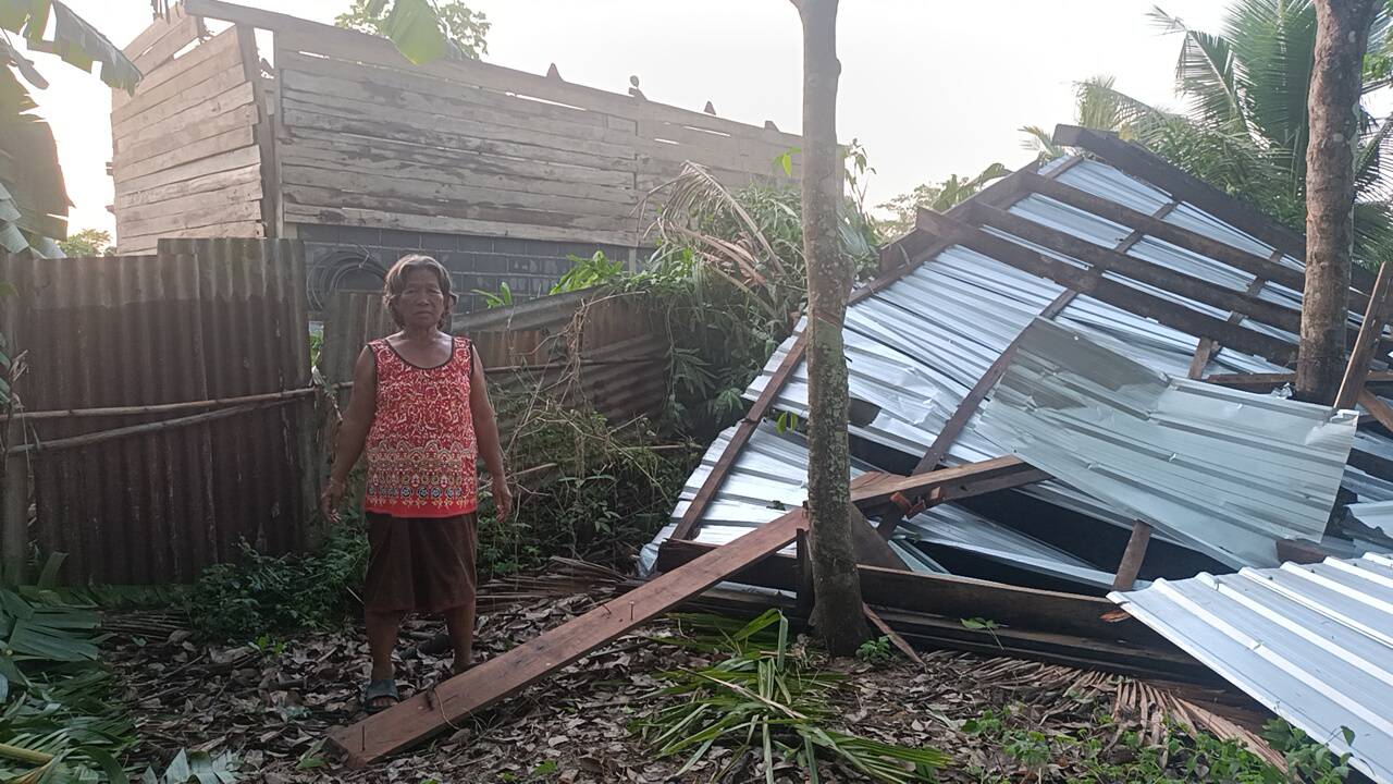 ด้านนางบุษบา งาหอม อยู่บ้านเลขที่ 97 หมู่ที่ 21 กล่าวว่า ขณะที่นั่งอยู่ภายบ้านพักชั่วคราวได้เกิดพายุฝนตกลงมาอย่างหนักและพัดบ้านพังลงต่อหน้าต่อตา จึงพาลูกวิ่งหนีออกมาได้ทันตกใจและกลัวมากขณะที่ลมพัดมาพังบ้าน