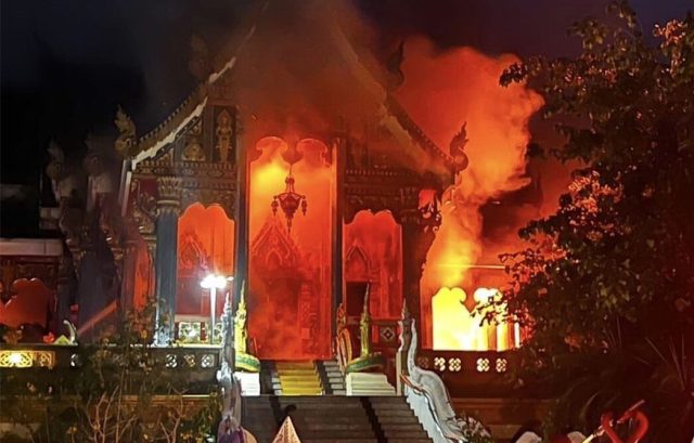 หนองคาย-เกิดเหตุเพลิงไหม้ อุโบสถ วัดพระธาตุบังพวน เพลิงลุกไหม้อย่างรุนแรงด้านใน ทำให้วัสดุที่เป็นไม้เสียหายทั้งหมด ล่าสุดเพลิงสงบแล้ว อยู่ระหว่างตรวจสอบ