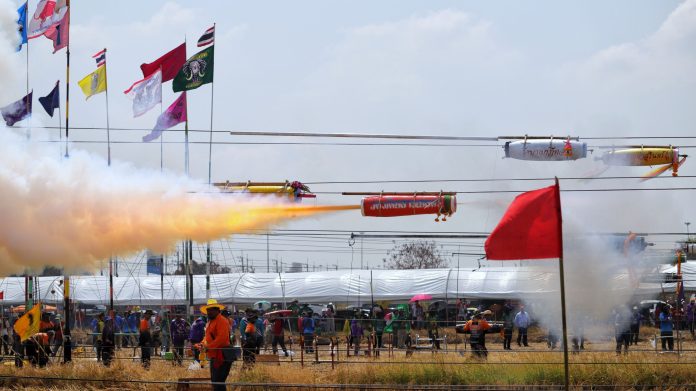 ยิงกันมันส์ ควันกระจาย แข่งขัน “ลูกหนู”จรวดมอญ ประเพณีโบราณเมืองปทุมฯ
