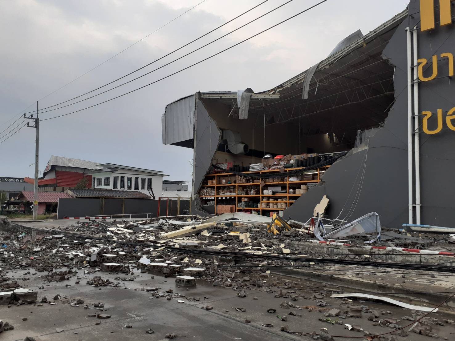 ลำพูน-พายุฤดูร้อนหอบทั้งฝนตก ลมกรรโชกรุนแรงสุดโหด ซัดบ้านเรือนหลังคากระเบื้องปลิวสร้างความเสียหายหนัก หลังคาตลาด ห้างขายของพังทั้งแถบ