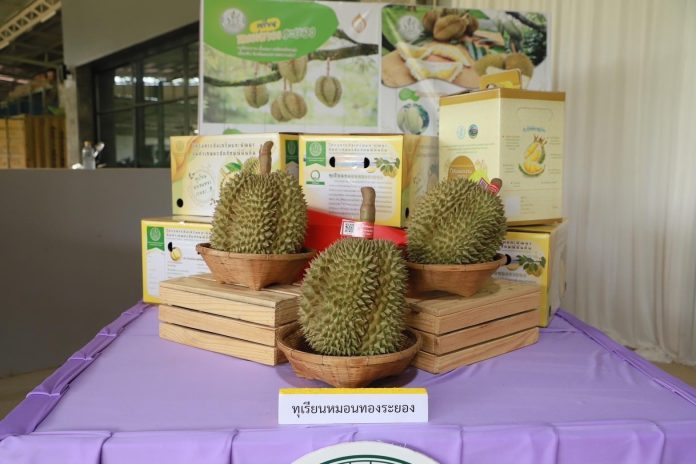 นอกจากนี้ สศก. ได้ติดตามตัวอย่างกลุ่มที่เข้าร่วมโครงการฯ ณ แปลงใหญ่ทุเรียนวังหว้า 1 ตำบลวังหว้า อำเภอแกลง จังหวัดระยอง พบว่า สมาชิกกลุ่มฯ จำนวน 40 ราย โดยปลูกทุเรียนพันธุ์หมอนทองระยอง พื้นที่ปลูกรวม 637 ไร่ ผลผลิตรวม 1,117,222 กิโลกรัมต่อปี มีนายธีระ กิจมานอานนท์ เป็นประธานกลุ่ม ซึ่งได้เข้าร่วมโครงการฯ และได้รับการถ่ายทอดความรู้เกี่ยวกับเทคนิคการจัดการทุเรียนเพื่อลดต้นทุนการผลิตและเพิ่มผลผลิตต่อไร่ และการสนับสนุนกล่องบรรจุภัณฑ์ทุเรียน จำนวน 400 กล่อง ครบตามเป้าหมาย โดยสมาชิกกลุ่มฯ เป็นผู้กำหนดหลักสูตรการอบรมและปัจจัยการผลิตที่ต้องการรับการสนับสนุนจากโครงการฯ ร