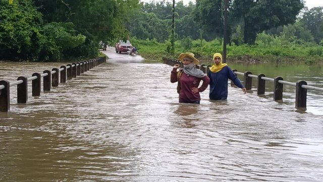 ด้านนายบุญเลื่อน แสนโครต หัวหน้าอุทยานแห่งชาติเขาใหญ่ที่ 9 (แก่งหินเพิง) เปิดเผยว่า เมื่อช่วงกลางดึกที่ผ่านมาได้มีมวลน้ำป่าจากเทือกเขาใหญ่ไหลเข้าท่วมพื้นที่หมู่ที่ 5 ต.สะพานหิน อ.นาดี เป็นวงกว้าง