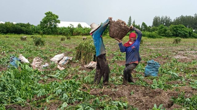 ฝนตกหนักติดต่อกันหลายวันส่งผลให้น้ำท่วมพื้นที่ราบเชิงเขา ส่งผลให้พื้นที่การเกษตรเกษตรกรในที่ราบลุ่มมีน้ำท่วมขัง เกษตรกรชาวไร่มันสำปะหลังจึงพากันเร่งถอนหัวมันหนีน้ำท่วม แม้ว่ามันสําปะหลังจะมีอายุเพียงแค่ 7 เดือนจำเป็นต้องถอนมันขายก่อนกำหนด