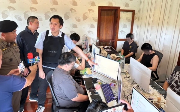 เมื่อวันที่ 30 ส.ค.2567 พล.ต.ท.อิทธิพล อิทธิสารรณชัย ผบช.สตม. ได้สั่งการให้ พล.ต.ต.พันธนะ นุชนารถ รอง ผบช.สตม.นำกำลังเจ้าหน้าที่ตำรวจตรวจคนเข้าเมืองนำหมายค้นที่ 258/2567 บุกค้นบ้านเลขที่ 31/16 ม.6 ต.โป่ง อ.บางละมุง จ.ชลบุรี บ้านหรูบนพื้นที่กว่า 4 ไร่ พร้อมควบคุมตัวกลุ่มชาวจีน 15 คน เป็นชาย 14 คนและหญิง 1 คน ยึดคอมพิวเตอร์ 18 เครื่องและโทรศัพท์มือถือจำนวน 90 เครื่อง