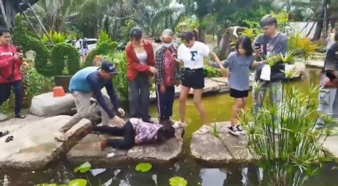 หน้าแรกข่าวล่าสุดแตกตื่นกันทั้งงาน!จูๆป้าคลานกลางสระน้ำขณะร่วมบวงสรวงพญานาคราช