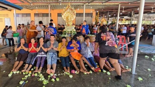 ศิษยานุศิษย์กว่าพันคน แห่อาบน้ำมนต์ พระเกจิสายมูดังชลบุรี สาวเผยเชื่อหมดเคราะห์เอาสิ่งไม่ดีทิ้งปีนี้ เริ่มต้นปีใหม่ หวังเป็นเศรษฐีดวงเฮงรางวัลที่ 1 คนที่ 9 ของวัด