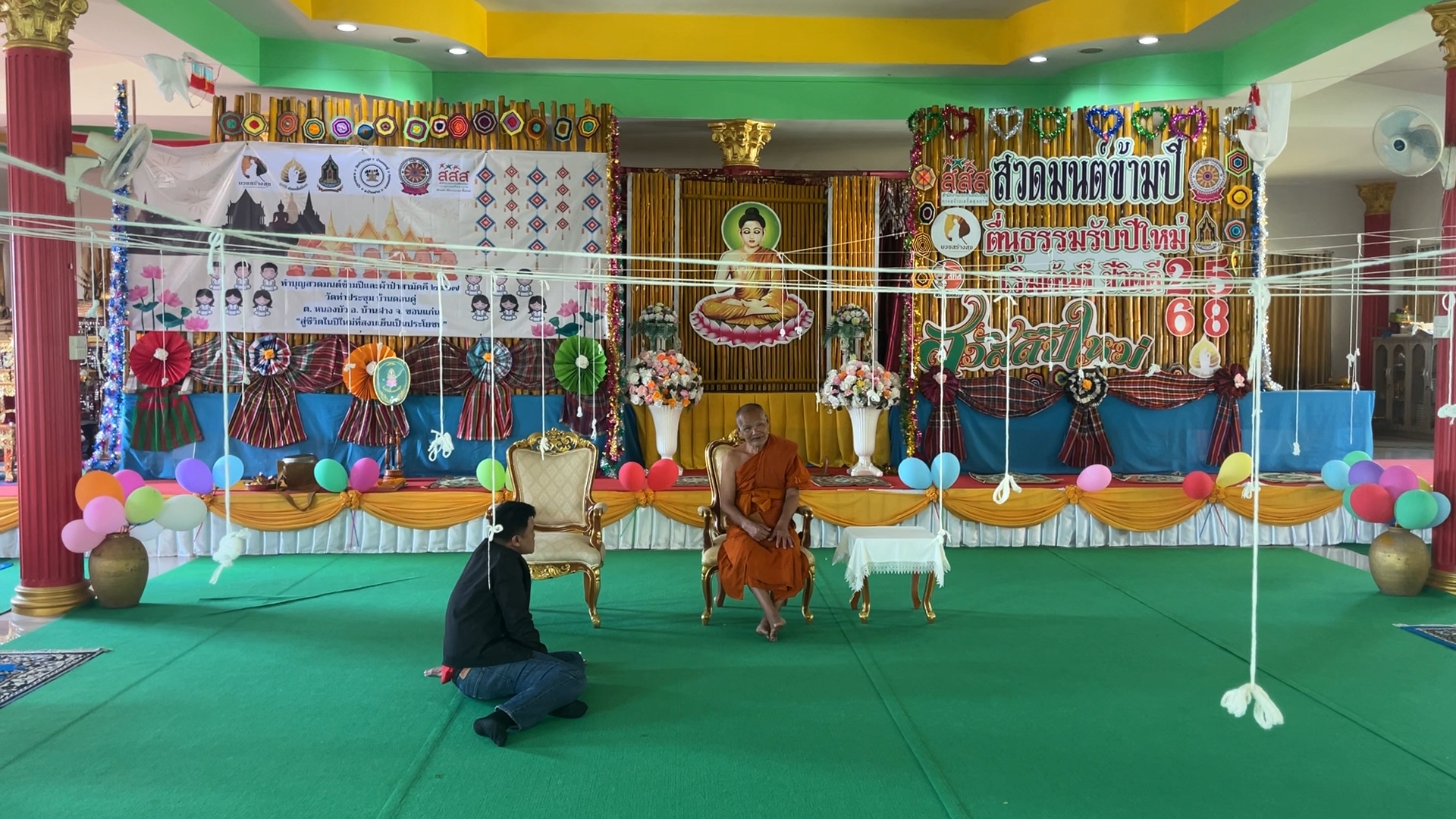เมื่อเวลา 08.30 น.วันที่ 30 ธ.ค.256 ที่วัดท่าประชุม ต.หนองบัว อ.บ้านฝาง จ.ขอนแก่น พระครูคัมภีร์สโมธาน เจ้าอาวาสวัดท่าประชุม พร้อมด้วย พระอาจารย์ภูวัต ภูริวัฑฒโน พระลูกวัดฯ นำคณะกรรมการวัดร่วมกันจัดเตรียมสถานที่สำหรับการจัดกิจกรรมสวดมนต์ข้ามปี ตื่นธรรมรับปีใหม่ เริ่มต้นดี ชีวิตดี ปี 2568 ซึ่งวัดท่าประชุมร่วมกับเครือข่ายพระสงฆ์นักพัฒนา และเครือข่ายองค์กรงดเหล้า ได้กำหนดจัดกิจกรรมขึ้นคืนวันที่ 31 ธ.ค.2567- 1 ม.ค.2568 โดยคณะทำงานได้มีการโยงด้ายสายสิญจน์และสายคล้องศีรษะ รวมทั้งการจัดเตรียมที่นั่งสวดมนตข้ามปีให้กับพุทธศาสนิกชนที่จะมาร่วมกิจกรรมซึ่งทางวัดคาดว่าปีนี้จะมีผู้เข้าร่วมกิจกรรมลดการดื่มและเปลี่ยนมาร่วมสวดมนต์ที่วัดไม่น้อยว่า 200 คน