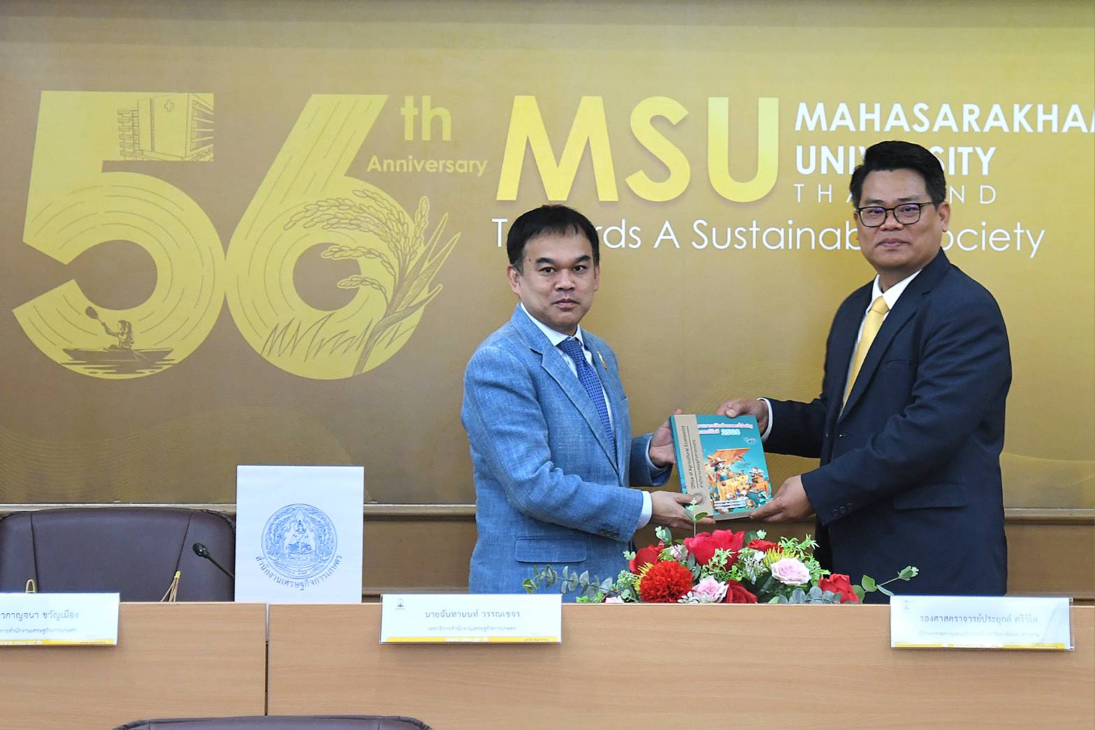 ในขณะที่ มหาวิทยาลัยมหาสารคาม เป็นสถาบันการศึกษาชั้นนำที่มีพันธกิจในการผลิตบัณฑิต การวิจัย และการให้บริการวิชาการที่เป็นเลิศ ซึ่งจะให้ช่วยสนับสนุนและให้การให้คำปรึกษา พัฒนาทักษะด้านวิชาการ รวมทั้งการพัฒนาและประยุกต์ใช้เครื่องมือเพื่อการวิเคราะห์ วิจัย และนวัตกรรมทางการเกษตรแก่นักวิชาการของ สศก. ได้เป็นอย่างมาก