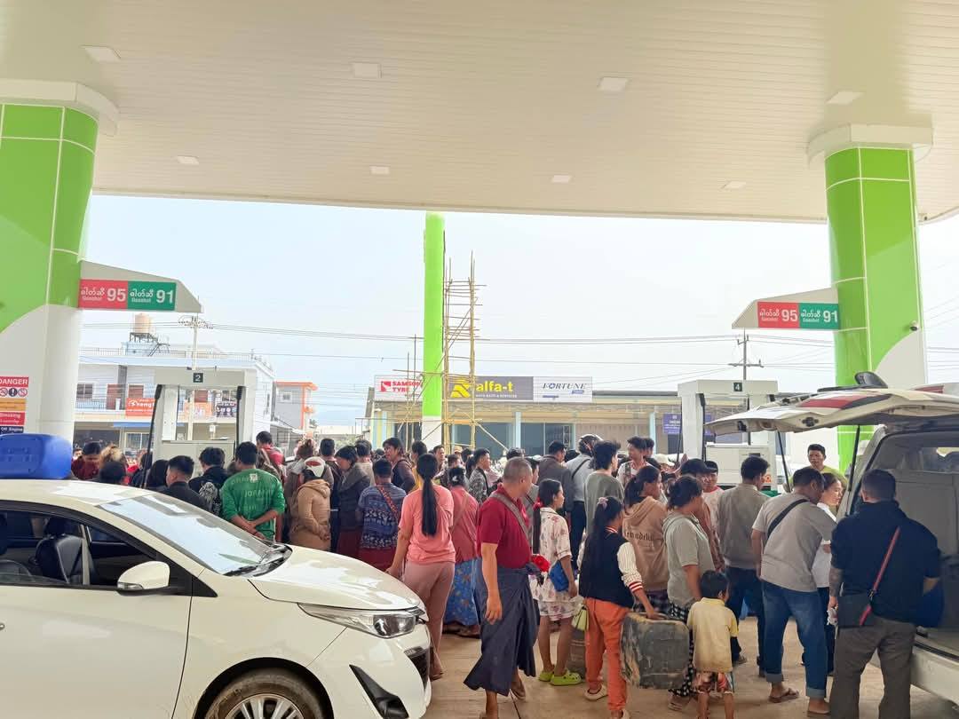 ขณะที่ ล่าสุด เพจ Know Shan State ได้โพสต์ภาพประชาชนชาวเมียนมาออกมาเติมน้ำมันรถกันล้นปั๊มน้ำมันในเมืองท่าขี้เหล็ก โดยระบุข้อความว่า “ประชาชนในเมืองท่าขี้เหล็ก ตรงข้ามแม่สายของไทย มาต่อแถวรอเติมน้ำมันกันตั้งแต่เช้า หลังไทยงดจำหน่ายให้ โดยเช้านี้ไทย ได้ตัดไฟ ตัดเน็ต งดจำหน่ายน้ำมันให้กับประเทศพม่าอย่างเป็นทางการ”