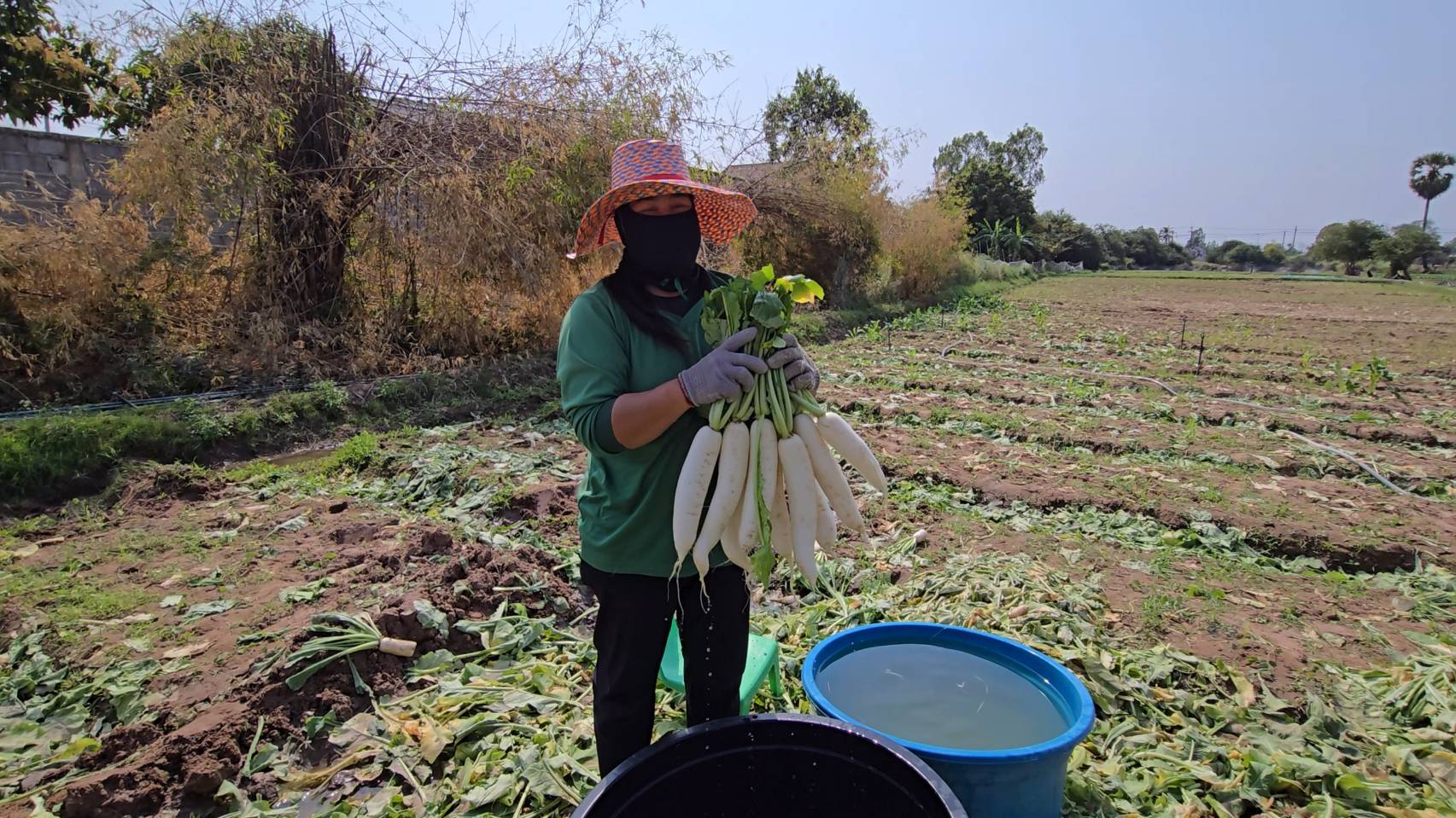 “ที่หมู่บ้านของเรามีเกษตรกรปลูกหัวไชเท้าจำนวนมาก โดยเฉพาะในที่นาริมคลองน้ำ เพราะมีน้ำเพียงพอ ปีนี้หัวไชเท้าออกมาสวย หัวใหญ่ เนื้อดี เมื่อนำไปขายก็ทำให้มีรายได้ที่พอเลี้ยงครอบครัวได้”
