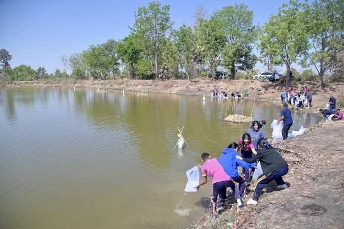 นายบัญชา สุขแก้ว อธิบดีกรมประมง เป็นประธานเปิดงาน Kick off ธนาคารผลผลิตสัตว์น้ำแบบมีส่วนร่วม “หนองโสกแบ่ง” จังหวัดมหาสารคาม โดยมี นางฐิติพร หลาวประเสริฐ รองอธิบดีกรมประมง ผู้บริหารหน่วยงาน และประชาชนในพื้นที่เข้าร่วมงาน เผยปี 2568 พร้อมขยายผลแหล่งน้ำใหม่อีก 20 แห่ง เสริมความเข้มแข็งให้ชุมชนในการบริหารจัดการแหล่งน้ำอย่างมีประสิทธิภาพและยั่งยืน สร้างความมั่นคงทางอาหาร ยกระดับคุณภาพชีวิตประชาชนในพื้นที่ให้อยู่ดี กินดี มีรายได้เพิ่มขึ้น สอดรับนโยบาย นายอัครา พรหมเผ่า รัฐมนตรีช่วยว่าการกระทรวงเกษตรและสหกรณ์