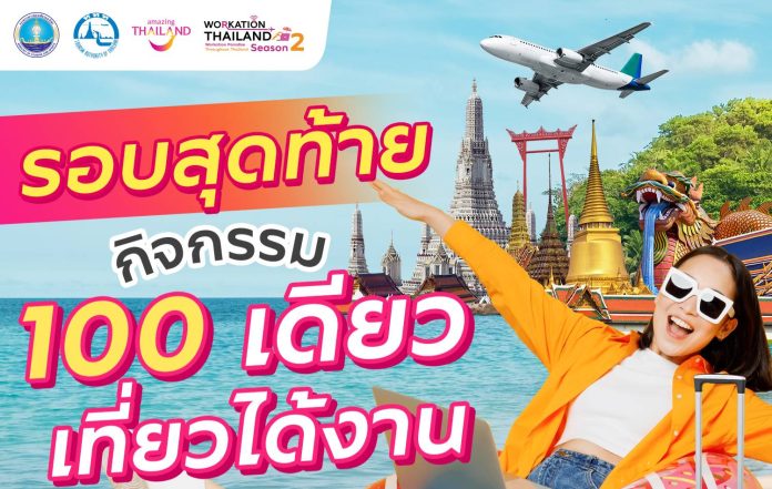 การท่องเที่ยวแห่งประเทศไทย (ททท.) จัดหนักจัดเต็มครั้งสุดท้ายกับแคมเปญกระตุ้นการท่องเที่ยวในรูปแบบ Workation ที่ส่งเสริมการออกเดินทางท่องเที่ยวพร้อมทำงาน เพื่อสร้างประสบการณ์การทำงานในรูปแบบใหม่และก่อเกิดการเดินทางท่องเที่ยวในช่วงฤดูท่องเที่ยว (High Season) ผ่านกิจกรรมส่งเสริมการขาย “100 เดียวเที่ยวได้งาน” ซึ่งเป็นกิจกรรมที่ส่งเสริมการตลาดและกระตุ้นการใช้จ่ายของนักท่องเที่ยว เพื่อก่อเกิดการเดินทางท่องเที่ยวภายในประเทศช่วงวันธรรมดา โดยนำเสนอสินค้าและการบริการด้านการท่องเที่ยวในรูปแบบบัตรกำนัล (Voucher) ซึ่งจะเสนอขายในราคาเพียง 100 บาทเท่านั้น