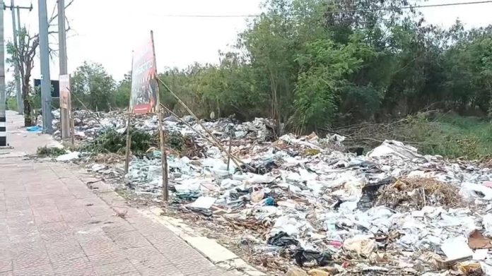 นายทวี อายุ 40 ปี ชาวบ้านที่อาศัยอยู่บริเวณใกล้เคียง บอกว่า พื้นที่ตรงนี้มีชาวบ้านแอบเอาขยะมาทิ้งตั้งแต่ปี 2563 แล้ว ทางเทศบาลเคยลงพื้นที่จัดการเก็บและทำความสะอาดไปแล้วครั้งหนึ่ง และได้นำแผงเหล็กมากั้นเพื่อไม่ให้คนเอาขยะมาทิ้งแต่ก็ไม่ได้ผล ทั้งติดป้ายเตือนห้ามนำขยะมาทิ้งจนป้ายเก่าพังไปแล้ว ก็ยังมีคนแอบเอาขยะมาทิ้งอีก แรกๆ ก็เอาไปทิ้งตรงจุดที่เลยแผงเหล็กกั้นไปเล็กน้อย แต่พอนานวันเข้ากองขยะมันก็สะสมจนกลายเป็นเหมือนจุดทิ้งขยะไปแล้ว