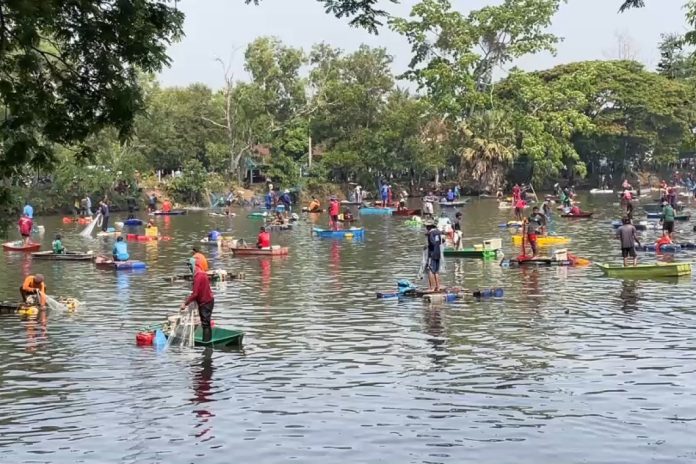 เมื่อวันที่ 23 มี.ค.2568 ผู้สื่อข่าวประจำจังหวัดสุรินทร์ ได้ลงพื้นที่ไปยังหนองตะคร้อ-หนองตาด หมู่ที่ 3 บ้านพนมดิน ตำบลตาเมียง อำเภอพนมดงรัก จังหวัดสุรินทร์ ซึ้งเป็นหนองน้ำสาธารณะของหมู่บ้าน มีการเปิดหนองน้ำขายบัตรลงแพหว่านแห่จับปลา เพื่อหารายได้ เข้ากองทุนหมู่บ้าน ไว้พัฒนาชุมชนและเพื่อจัดซื้อพันธุ์ปลามาปล่อยไว้ในปีถัดไป