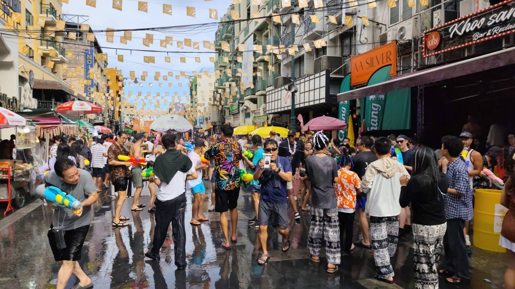 สงกรานต์ถนนข้าวสาร คึกคัก! นักท่องเที่ยวควงปืนฉีดน้ำชุ่มฉ่ำสนั่นกรุงท่ามกลา ตำรวจนครบาลนำร่องใช้กล้อง AI ตรวจจับใบหน้า ดูความหนาแน่นคน