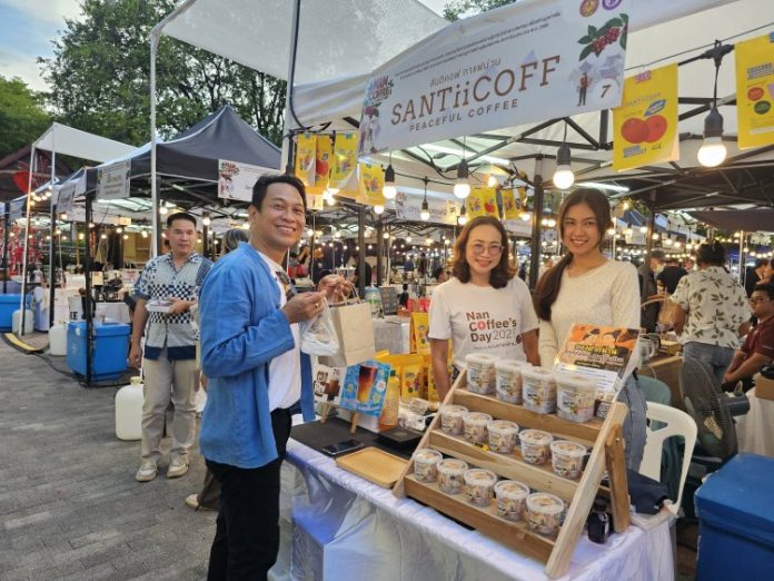สำนักงานอุตสาหกรรมจังหวัดน่าน ขนผู้ประกอบการกาแฟน่านกว่า 24 ร้านกาแฟดังทั่วจังหวัดน่าน พร้อมด้วยเครือข่ายผู้ประกอบการ จังหวัดน่าน รวมกว่า 36 ราย โดยมีผู้ประกอบการที่ได้รับการพัฒนาและเสริมสร้างองค์ความรู้ด้านการแปรรูปกาแฟ เพื่อเพิ่มมูลค่าและเชื่อมโยงตลาด จำนวน 15 ราย นำผลิตภัณฑ์ที่ได้รับการพัฒนา ร่วมทดสอบตลาดผลิตภัณฑ์กาแฟน่าน ระหว่างวันที่ 20-21 กันยายน 2568 ณ ข่วงเมืองน่าน (ข่วงน้อย) โดยมีนายบรรจง ขุนเพชร รองผู้ว่าราชการจังหวัดน่านเป็นประธานในพิธีเปิดงาน