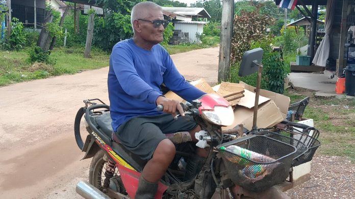 นายธรรมนูญ วันทา อายุ 69 ปีอยู่บ้านเลขที่ 87/1 หมู่ 9 ต.ย่านรี อ.กบินทร์บุรี จ.ปราจีนบุรี จิตอาสาในหมู่บ้านเขาด้วนหมู่ที่ 9 ต.ย่านรี อ.กบินทร์บุรี เริ่มเก็บขยะทั่วไปตามบ้านเรือน ของเพื่อนบ้านมากว่า 1 ปี