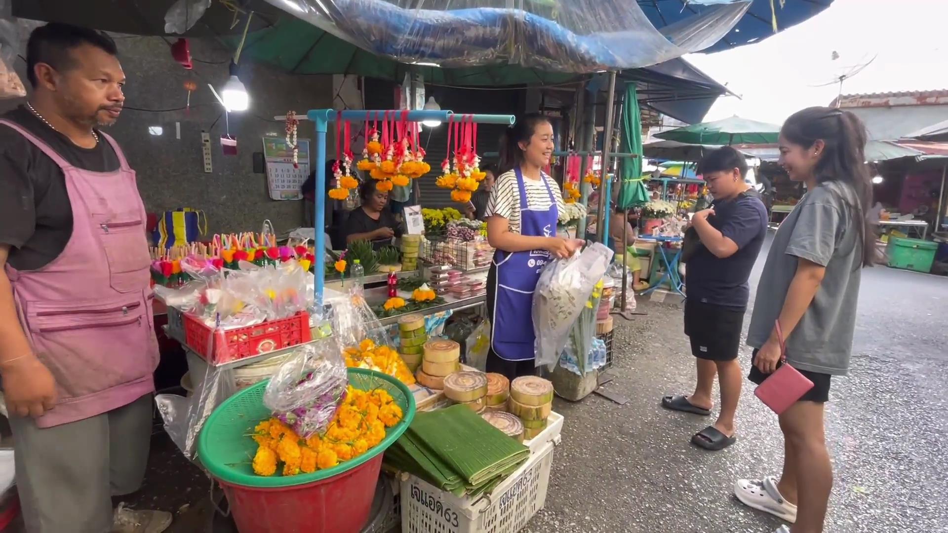 เช่นเดียวกับ นายสุนทร เอี่ยมละม่อม พ่อค้าขายดอกไม้ และทำกระทงสดขาย บอกว่า ปีที่แล้วเตรียมกระทงเปล่าไว้ 200 กระทง ไว้รองรับนักเรียน ส่วนกระทงใส่ดอกไม้ เตรียมไว้ประมาณ 100 กระทง แต่ปีนี้เตรียมไว้น้อย ทั้งนี้ ปกติก่อนถึงวันลอยกระทง 2 วัน บรรยากาศก็คึกคักแล้ว แต่ปีนี้เงียบมาก ดอกไม้ในพื้นที่ก็มีน้อย เช่น ดอกดาวเรือง เพราะฝนตกหนักทำดอกไม้เสียหาย จึงต้องสั่งซื้อดอกไม้มาจากปากคลองตลาด กรุงเทพฯ แต่มีราคาแพงมาก 2-4 เท่าตัว