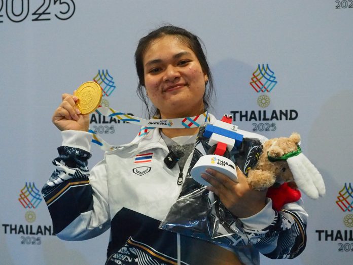การแข่งขันกีฬายกน้ำหนัก มหกรรมกีฬาซีเกมส์ ครั้งที่ 33 ที่โรงยิมเนเซียม โรงเรียนกีฬาจังหวัดชลบุรี ล่าสุดวันที่ 17 ธันวาคม 2568 ชิงชัยวันที่ห้า (วันสุดท้าย) ชิง 3 เหรียญทอง ในการนี้ พลตรีหญิง ท่านผู้หญิงอรอนงค์ ปิยนาฏวชิรพัทธ์ ประธานกรรมการที่ปรึกษา โครงการส่งเสริมการกีฬาเพื่อพัฒนาชาติไทย ในพระบรมราชูปถัมภ์ เป็นประธานมอบเหรียญรางวัลในรุ่น 77 กิโลกรัม หญิง และรุ่นมากกว่า 77 กิโลกรัม หญิง