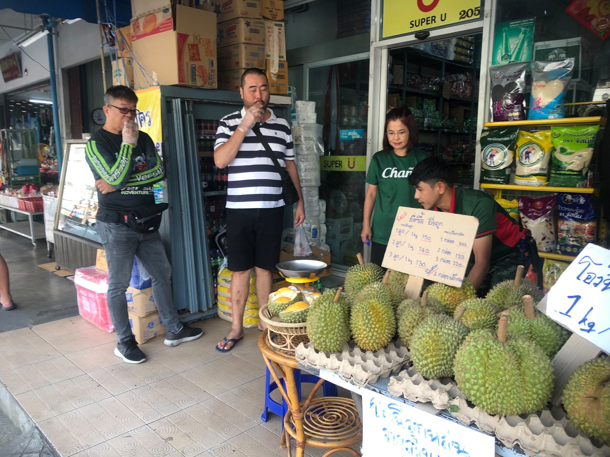 โดยช่วงนี้เป็นช่วงทุเรียนสายพันธุ์โอฉี่หรือหนามดำ ออกผลผลิตท้ายฤดูกาลทำให้ช่วงนี้ยอดขายดีเพราะนักท่องเที่ยวชาวมาเลเซียเข้ามาเยอะและราคาทุเรียนโอฉี่หรือหนามดำ ปีนี้มีราคาไม่แพงมากนัก ทุเรียนหนามดำหรือ โอฉี่ ปีนี้ขายอยู่ที่ 1 ลูก น้ำหนัก 1 กก. กก.ละ 150 บาท บรรจุกล่องละ 100 บาท 2 ลูก น้ำหนัก 1 กก. กก.ละ 140 บาท บรรจุกล่องละ 170บาท 3 ลูก น้ำหนัก 1 กก. กก.ละ 130 บาท บรรจุกล่องละ 220 บาท