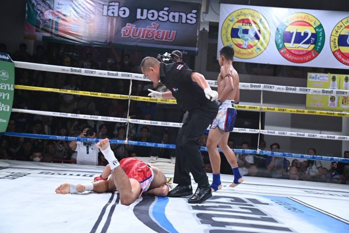 คู่ที่ 1. น็อกยก 2 ตกรอบ วุฒิเดช ศ.เดชดำรงค์ (แดง) พบกับ แสงพนม ผดุงชัยมวยไทยยิม (น้ำเงิน) คู่นี้ใครแพ้ตกรอบทันที “วุฒิเดช” เป็นมวยขวาเข่าในเหนียวแน่นด้าน “แสงพนม” มวยขวาด้วยกันเตะหนักมวยเข่าอาชีพเช่นกัน “วุฒิเดช” เดินเตะขวาลำตัวตามด้วยหมัดเข้าใบหน้าแต่ไม่ชัดเจนผิดกับ “แสงพนม” เดินย่างสามขุมเตะขวาจับในตีเข่าเน้นๆ ตามด้วยหมัดทำเอา “วุฒิเดช” ถึงกับสะดุ้งไปเหมือนกับ เกมจบยก2 จังหวะที่ทั้งคู่ยืนปักหลักดวลเข่าด้วยกัน เป็นจังหวะที่ “แสงพนม” ฮุกช้ายเข้าปลายคาง “วุฒิเดช” เต็มๆ ถึงกับร่วงให้กรรมการนับ 8 ชกต่อ “แสงพนม” ไม่ปล่อยโอกาสวิ่งเข้าไปรัวหมัดทั้งซ้ายและขวาเข้าปลายคางอีกรอบเต็มๆ “วุฒิเดช” ร่วงให้กรรมการนับ10 ทำให้ “แสงพนม” เป็นฝ่ายชนะทีเคโอ2 ยังได้ไปต่อ ส่วน “วุฒิเดช” ตกรอบทันที