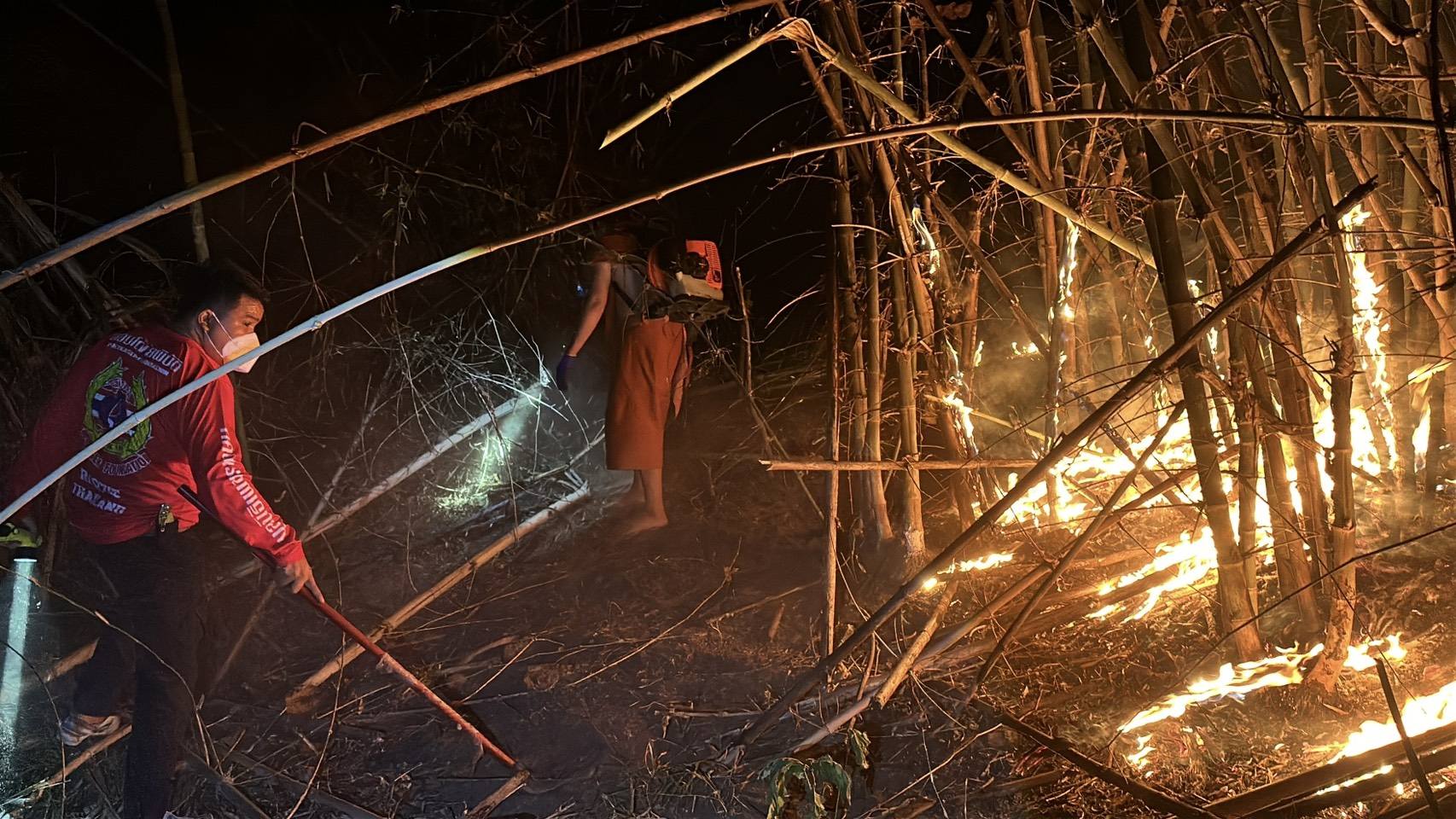 เจ้าหน้าที่ใช้ทั้งวิธีทำแนวกันไฟเพิ่มเติม และฉีดน้ำสกัดแนวเพลิงเพื่อป้องกันไม่ให้ลุกลามเข้าสู่พื้นที่ช้าง ซึ่งถือเป็นจุดเสี่ยงสำคัญ เนื่องจากมีช้างอยู่จำนวนมาก