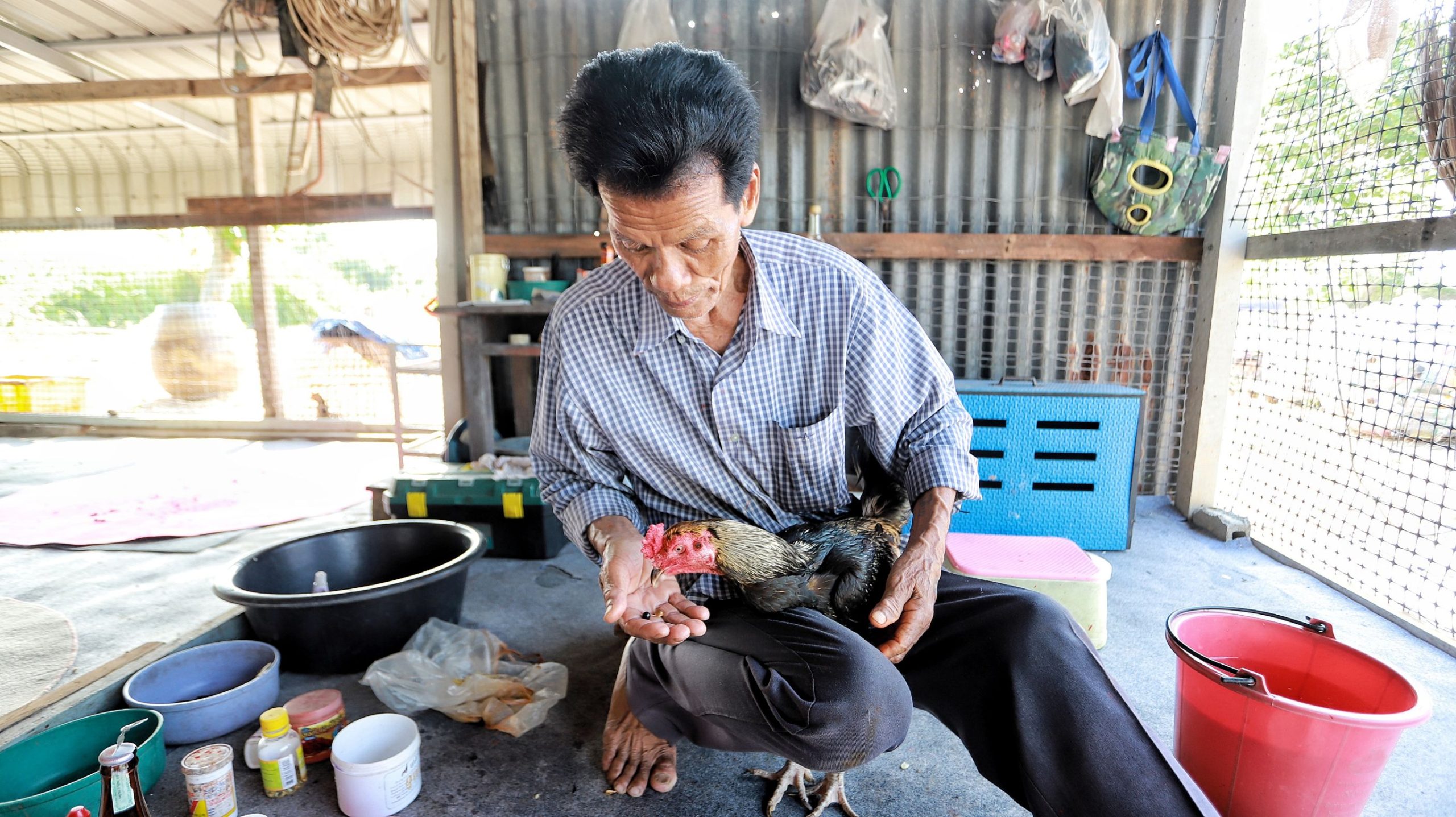 การกราดน้ำไก่ เป็นการดูแลสุขภาพไก่ชนที่สำคัญมาก ช่วยให้ไก่สดชื่น กระตุ้นการไหลเวียนโลหิต ลดอุณหภูมิในร่างกาย ช่วยกระชับผิวหนังและกล้ามเนื้อให้แข็งแรง รวมถึงช่วยไล่ไร พาราไซต์ และป้องกันโรคที่เกิดจากความชื้น ทำให้ไก่กระฉับกระเฉงพร้อมชน และที่สำคัญยังเป็นการออกกำลังกายในตอนเช้าทุกวันของคนสูงอายุอย่างตนเองด้วย ลุงสังวาลกล่าวทิ้งท้าย