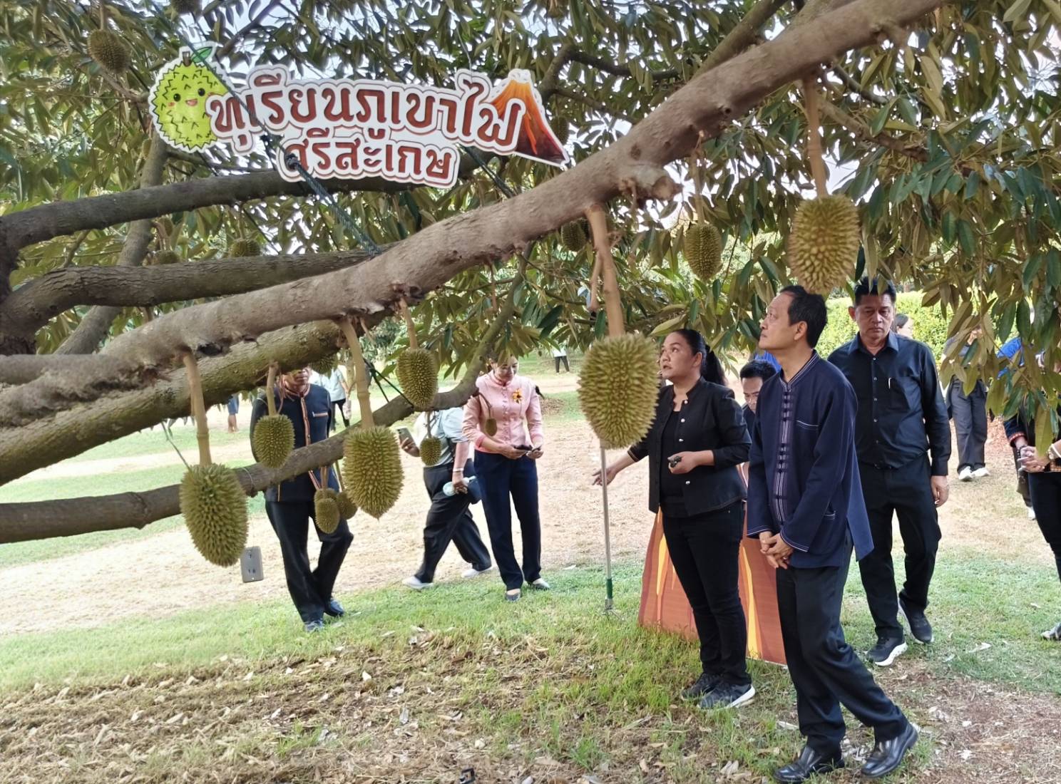 นายสุชาติ กลิ่นทองหลาง เกษตรจังหวัดศรีสะเกษ กล่าวรายงานว่า กิจกรรม “ตัดลูกด้วยใจ เพื่อคุณภาพทุเรียนภูเขาไฟศรีสะเกษ” ในวันนี้ ปัจจุบันจังหวัดศรีสะเกษมีเกษตรกรผู้ปลูกลูกทุเรียนรวมทั้งสิ้น ๓..๗๙ ราย มีพื้นที่ ปลูกรวม ๒๒,๖๑๕ ไร่ โดยมีพื้นที่ให้ผลผลิตแล้ว ๑๖,๙๐๑ ไร่ ซึ่งในปี ๒๕๖๙ นี้คาดการณ์ว่าจะมีปริมาณผลผลิตรวมทั้งจังหวัดประมาณ ๒๕,๘๕๓ ตัน เพิ่มขึ้นจากปี ที่ผ่านมาถึงร้อยละ ๒๕