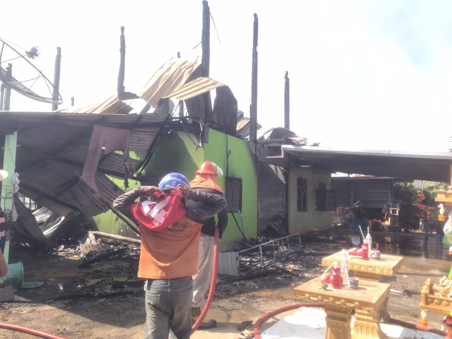 แต่ไม่สามารถสกัดเพลิงให้หยุดได้ จริงมอดไหม้ทั้งหลังดังกล่าว
