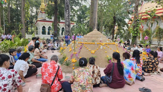 ปราจีนบุรี – สืบสานประเพณี 100 ปี! วัดโคกมะกอกจัดพิธีฉลองพระเจดีย์ทรายวันออกสงกรานต์ ทำบุญส่งท้ายก่อนกลับไปทำงาน
