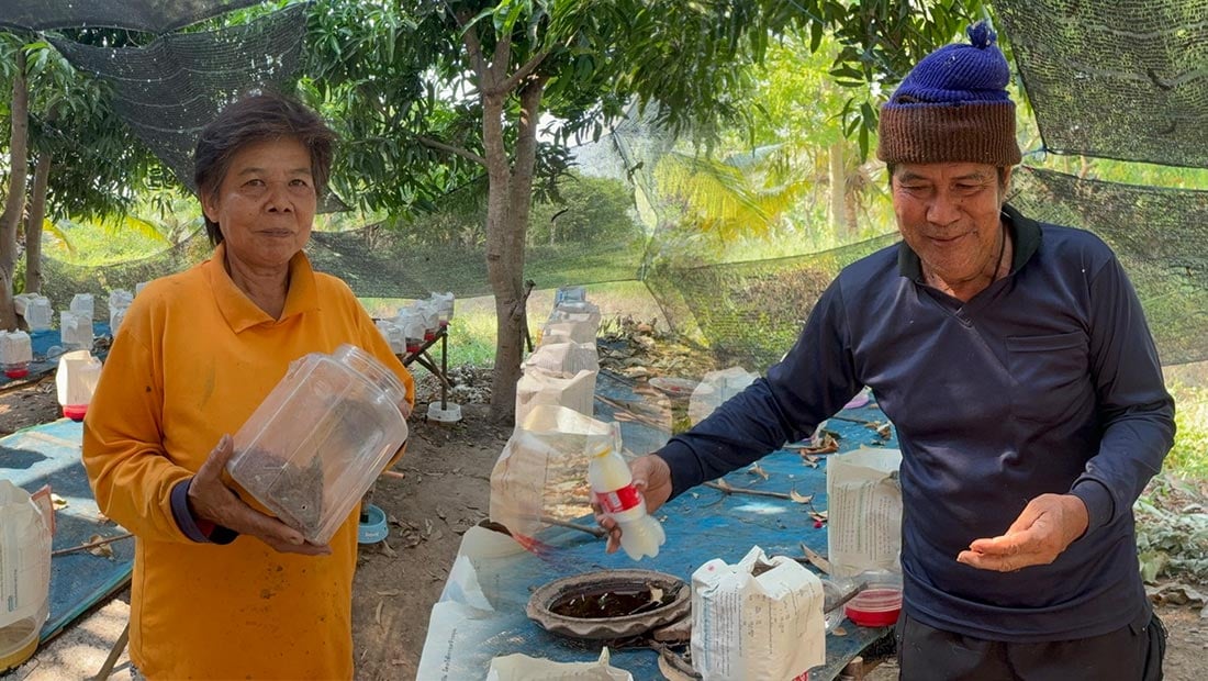 เมื่อได้มดแดงมาจากป่า สองตายายจะนำมา “ต่อยอด” การเลี้ยงที่บ้านด้วยวิธีง่ายๆ แต่ได้ผลผลิตสูง โดยทำที่อยู่อาศัยลักษณะเป็น “คอนโดมด” ใช้กระป๋องพลาสติกใส่น้ำเปล่าเล็กน้อย เจาะรูด้านข้าง แล้วนำไปผูกติดกับกิ่งไม้ มดแดงจะเข้าไปสร้างรังแทนกิ่งไม้ธรรมชาติ ทำให้เก็บผลผลิตง่ายและสะอาด.