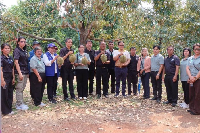 นายอนุรัตน์ ธรรมประจำจิต ผู้ว่าราชการจังหวัดศรีสะเกษ ลงพื้นที่ ณ สวนอิงธาร ตำบลตระกาจ อำเภอกันทรลักษ์ เพื่อติดตามสถานการณ์และให้กำลังใจเกษตรกรผู้ปลูก “ทุเรียนภูเขาไฟศรีสะเกษ” ที่ได้รับผลกระทบจากวาตภัยในช่วงที่ผ่านมา